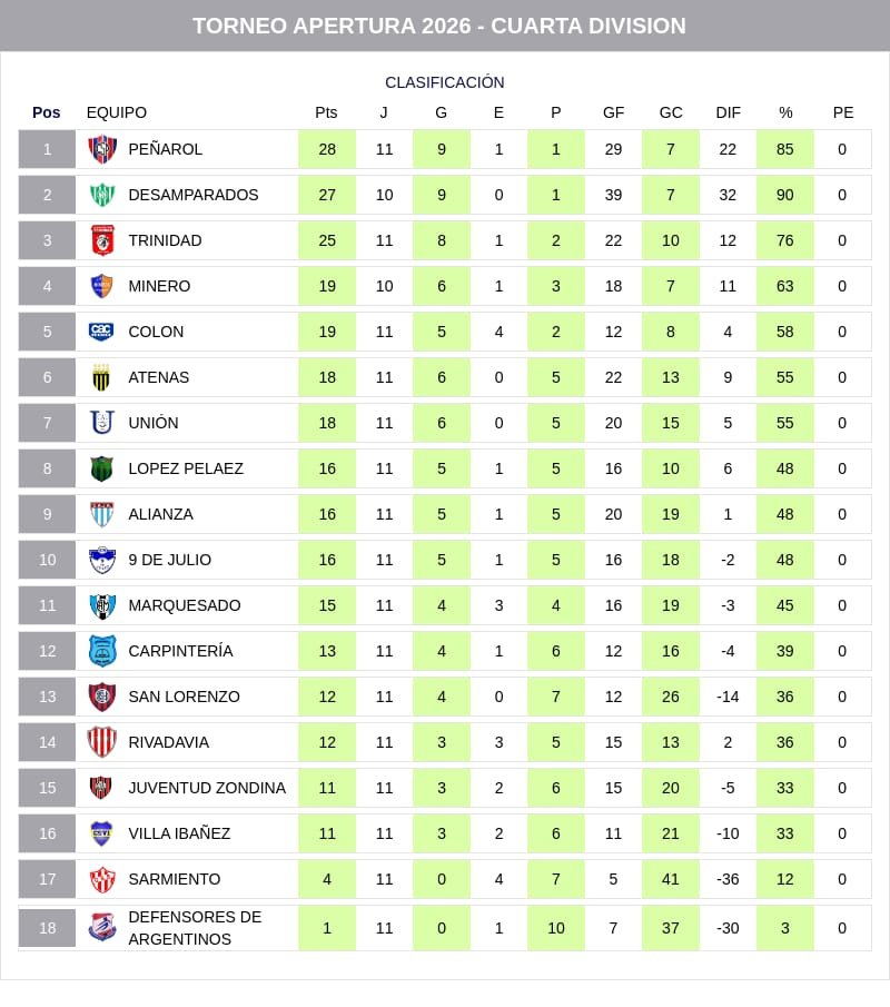 Se jugó la undecima fecha del Torneo Apertura de Liga Sanjuanina de Fútbol y Unión y Sportivo Desamparados se vuelven a subir a la cima. Con partidos muy interesantes, que dejaron una gran victoria de visitante de Alianza sobre Minero, de Unión sobre Defensores de Argentinos y la del puyutano sobre Villa Ibañez, todos en condición de visitante. En tanto Colón sigue a paso firme y dió cuenta de Juventud Zondina, otro de los resultados importantes, fue la victoria en Santa Lucía de Carpintería sobre López Pelaez y la lluvia de goles estuvo en Rivadavia, donde Atlético Marquesado igualó con 9 de Julio 4-4.