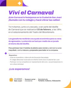 La Municipalidad de la Ciudad de San Juan organiza un evento imperdible para el sábado 22 de febrero, donde la celebración del tradicional carnaval sanjuanino se une con la conciencia ambiental.