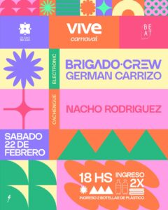 Pero eso no es todo. El festejo juvenil contará con una segunda parte, el esperado Show de DJs “Vive Carnaval”. Organizado por Beat Producciones, este espectáculo musical contará con la participación de los DJs Nacho Rodríguez, con su estilo «cachengue», Brigado Crew y Germán Carrizo, con una propuesta musical electrónica de alta calidad.