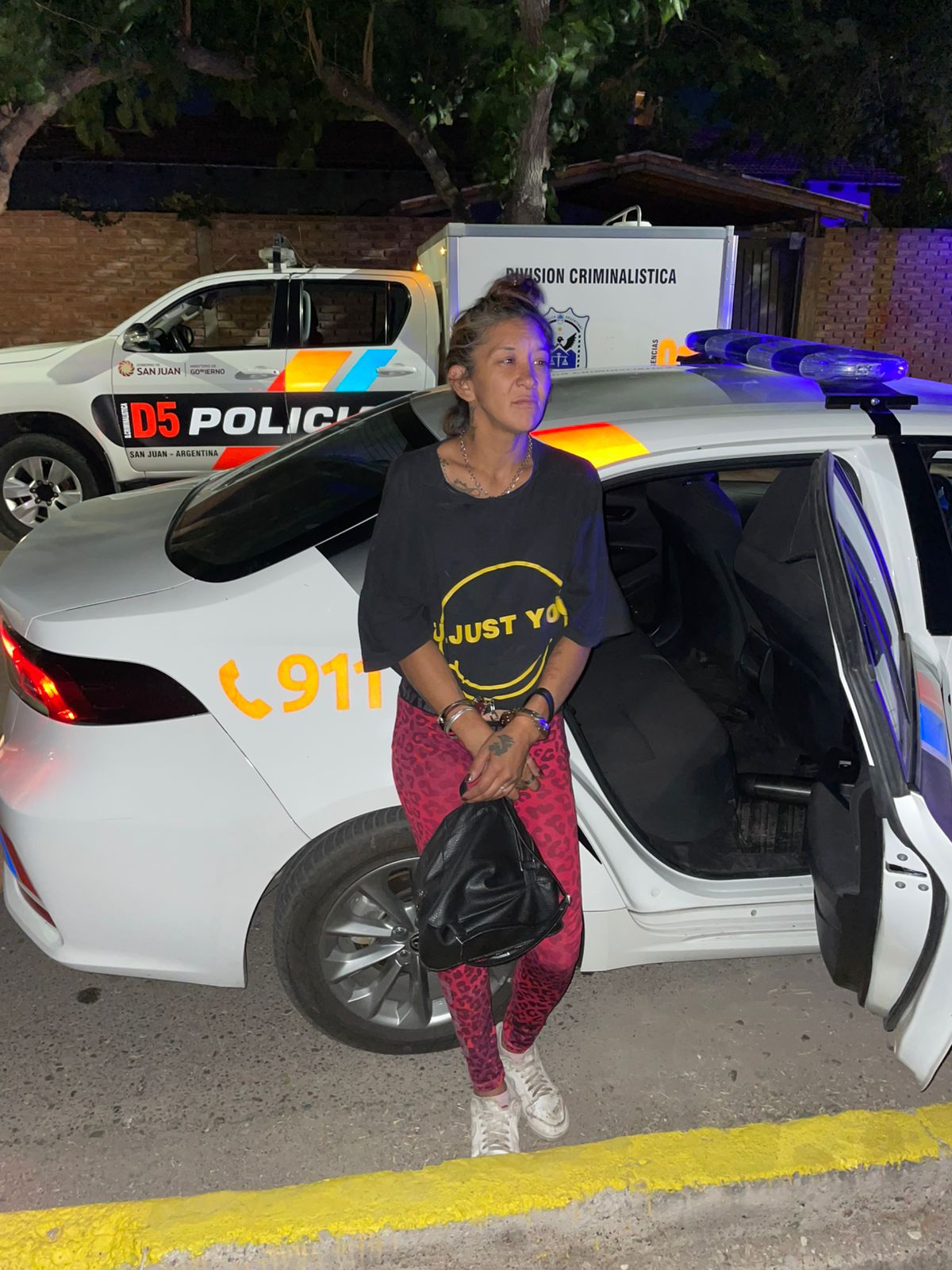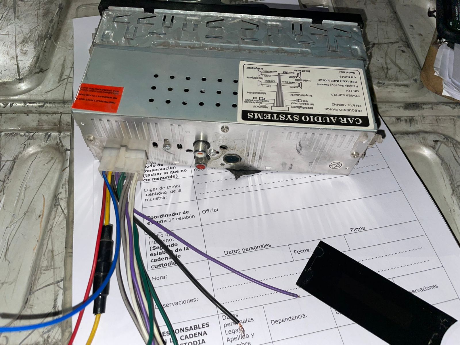 Alrededor de la 01:45 hs, los efectivos visualizaron a la pareja descendiendo de una camioneta Ford Ranger roja estacionada en calle Tomas Cruz 3067 Oeste. Al realizar un palpado de urgencia, se encontró un estéreo marca Visible, color negro con vivos gris, con cables de alimentación violentados.