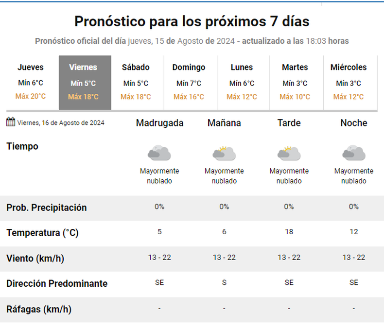 Según lo anticipó el Servicio Meteorológico será un viernes nublado y con temperaturas más acordes al invierno.