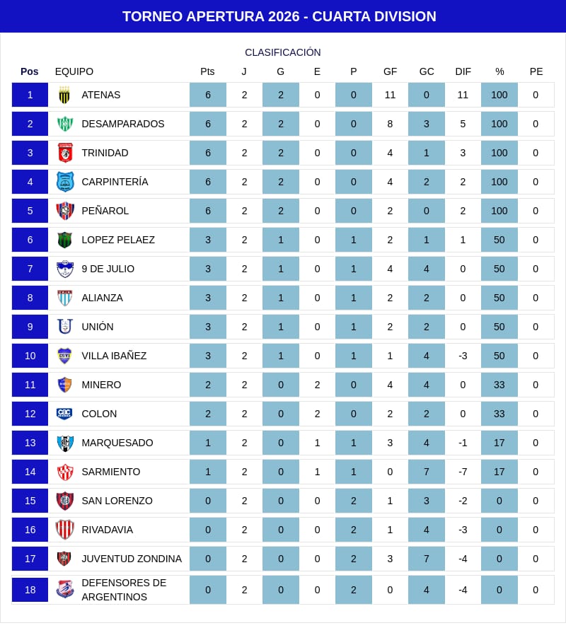 Por su parte, en la categoría de Cuarta División, el equipo de Carpintería se impuso con un resultado de 2 a 1 San Lorenzo.