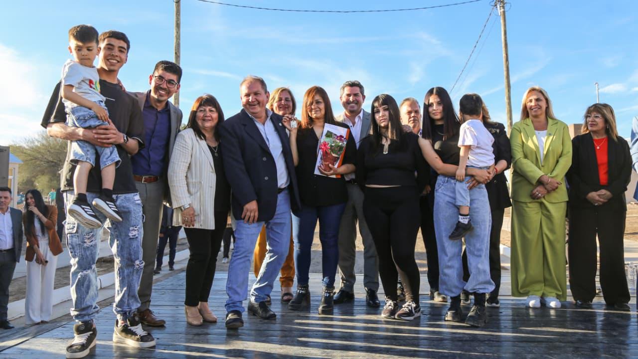 Durante el acto el gobernador estuvo acompañado por la intendenta de San Martín, Analía Becerra; el ministro de Infraestructura, Agua y Energía, Fernando Perea; el secretario de Infraestructura, Ariel Villavicencio; la directora del Instituto Provincial de la Vivienda, Elina Peralta, y concejales, entre otras autoridades, además de vecinos de la zona.