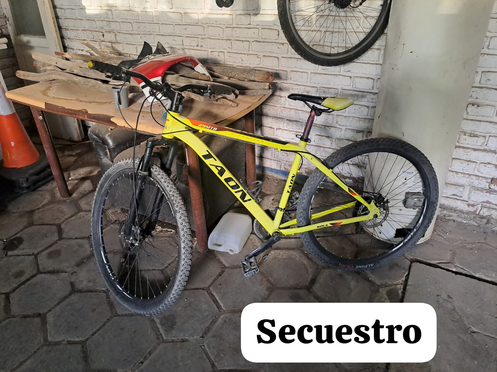 La policía llegó al lugar y procedió a la aprehensión formal del sospechoso. Se secuestró la bicicleta, una Taon rodado 29, color verde.