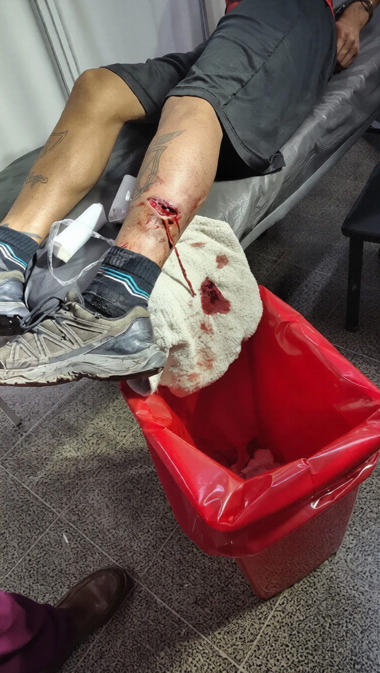 La aventura culminó en el barrio Florentino Ameghino de Chimbas, donde Ramírez sufrió una caída que le ocasionó un profundo corte en la tibia de la pierna izquierda, con una lesión tan grave que le produjo la ruptura de un tendón.