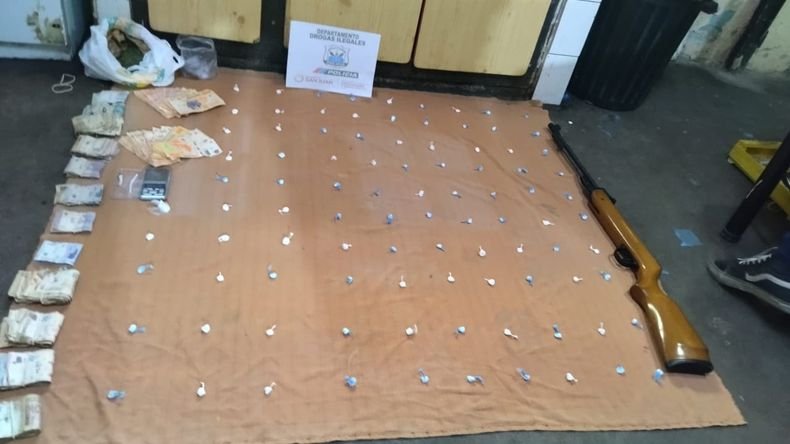 También se incautó dinero en efectivo, unos 200.000 pesos y un rifle aire comprimido calibre .22. Desde la Policía no dieron a conocer la identidad de las personas detenidas, solo se limitaron a decir que eran mayores de edad.