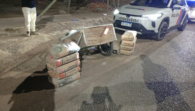 Durante recorridas, personal policial los localizó en el Barrio Timoteo Maradona, sobre calle Malvinas Argentinas a metros de Colón. Al entrevistarlos, no lograron acreditar la propiedad de las nueve bolsas de cemento que trasladaban.