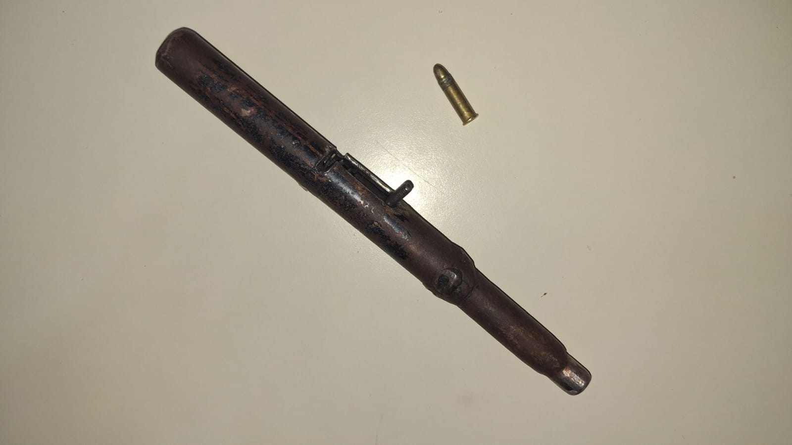 Un hombre de 44 años fue aprehendido en la madrugada de hoy en Villa Calingasta, acusado de tener en su poder un arma de fuego casera (tumbera) con una munición calibre 22.
