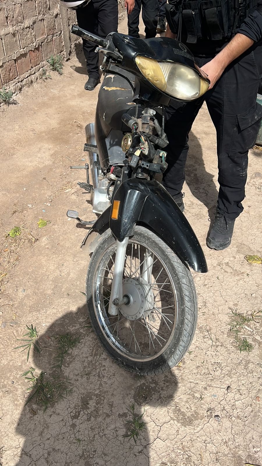 Tras la detención, se confirmó que la moto secuestrada era la Motomel Blitz denunciada minutos antes en jurisdicción de Comisaría 6ª. También se secuestró la bicicleta rodado 29 azul.