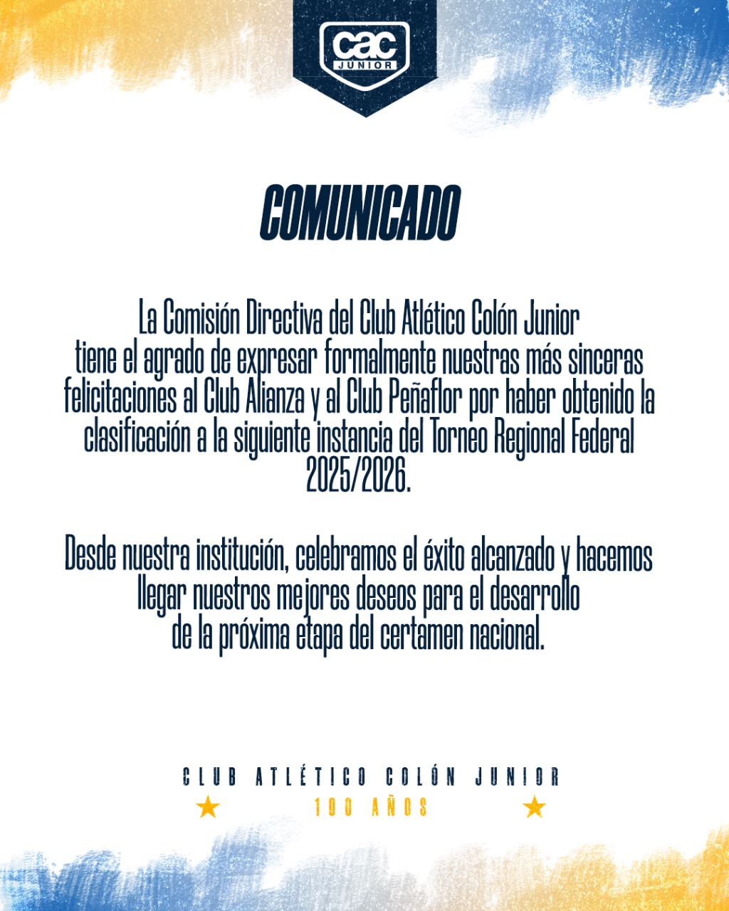 Desde el Club, emitieron un comunicado felicitando a Alianza y Peñaflor por el pasaporte a la segunda fase y desearon el.mayor de los éxitos a ambos Clubes.
