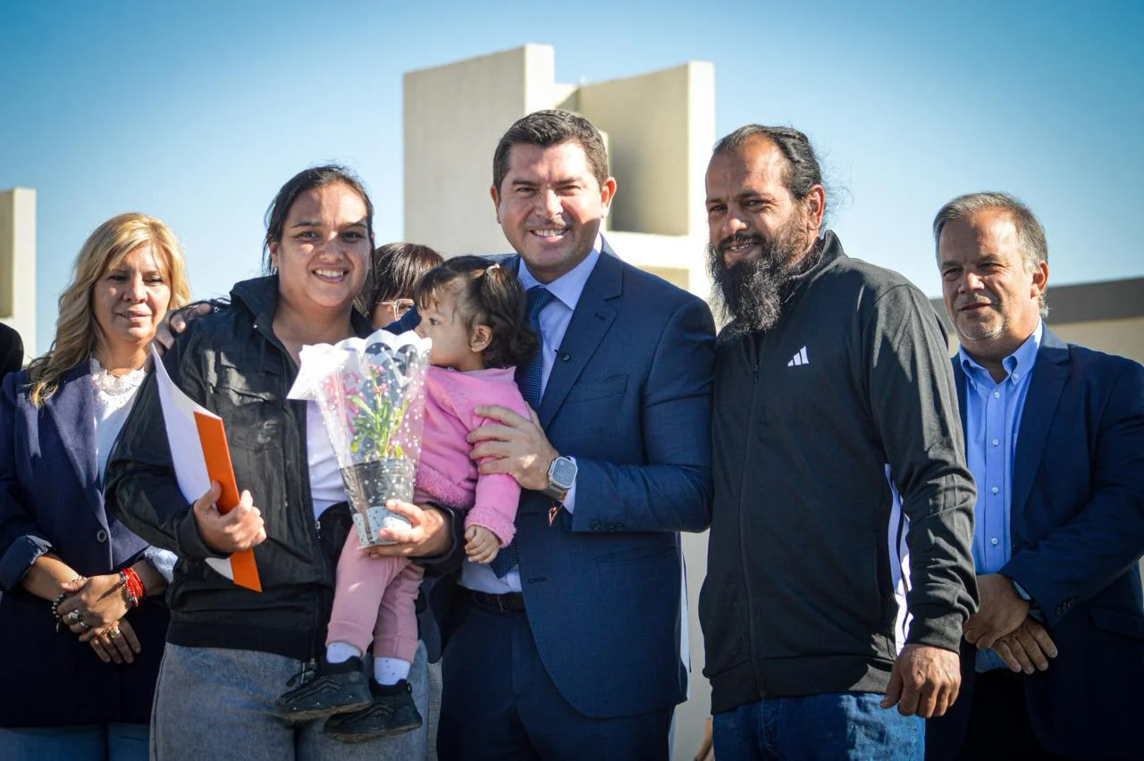 El acto lleno de emoción se realizo hoy en horas de la mañana en Chimbas, donde 46 familias sanjuaninas recibieron las llaves de su vivienda en una nueva entrega encabezada por el Instituto Provincial de la Vivienda (IPV). La directora del IPV, Elina Peralta, explicó que se trata de un barrio que ya venía con su tiempo de ejecución de obra y remarcó que forma parte del cronograma de entregas previsto para este año. En ese sentido, señaló que este complejo “es uno de los barrios que tenemos planificado para estar entregando mes a mes”, y anticipó que la meta para 2026 es superar las 1.500 viviendas entregadas en toda la provincia.