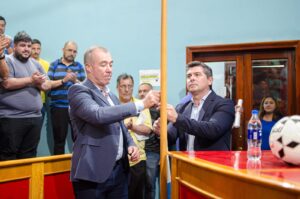 Teniendo en cuenta estas situaciones, Marcelo Orrego llegó hasta las instalaciones de LSF, acompañado del Vicegobernador Fabian Martin, para entregar 200 pelota, que serán repartidas entre los 40 clubes, tanto de 1ra A como de 1ra B. Como así también una importante ayuda económica, para que desde ahora y hasta fin de año, los competidores no tengan que pagar por el servicio arbitral y también se cubrió el dinero de los meses anteriores, desde Julio en adelante. La reunión contó con la presencia de la Mesa directiva de la Institución encabezada por su Presidente Juan Valiente y los representantes de todos los Clunes que componen el fútbol doméstico.