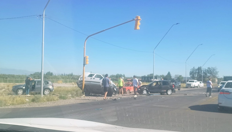 El choque involucró a una Kangoo que quedó encima de un semáforo mientras que los otros vehículos; un Fiat y otra Renault quedaron visiblemente dañados.