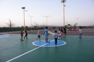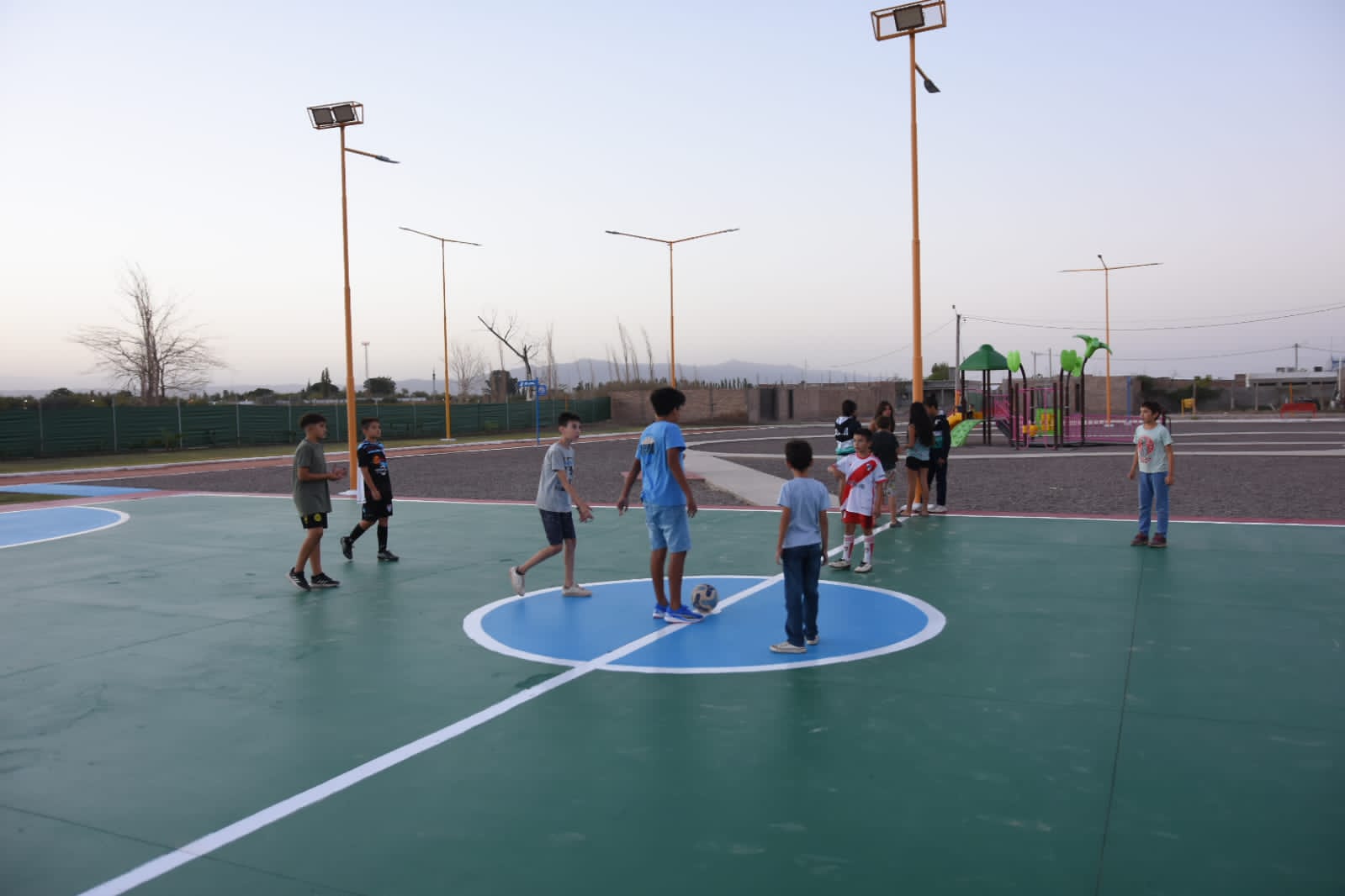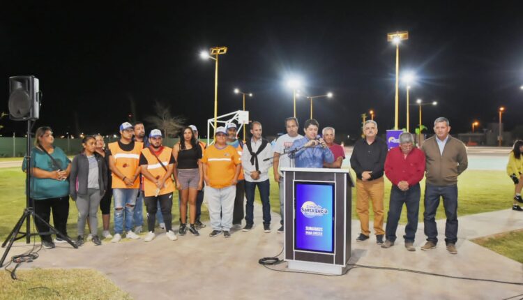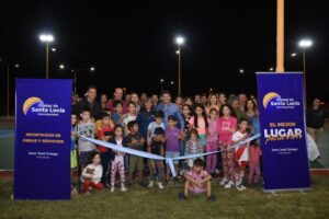 En Santa Lucía inauguraron una plaza que tiene hasta una pista de atletismo.