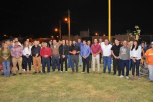 La nueva plaza, en horario nocturno, tiene un aspecto fantástico. En total, se colocaron 6 columnas metálicas telescópicas de 8 metros de alto. En las mismas se ubicaron 26 artefactos tipo paleta LED, además se colocó un tótem digital y se alimentó el cartel principal de plaza que con su moderna iluminación, les dará a los vecinos la bienvenida a este espacio único.