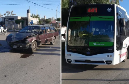 En la mañana de hoy, a las 07:40 horas, se produjo un siniestro vial en la intersección de las calles 9 de Julio y Segovia, en el departamento de Angaco, que involucró a un colectivo de transporte público y un automóvil particular.