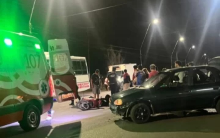 Este martes por la noche un choque entre un automóvil y una motocicleta terminó con el conductor del rodado menor herido y siendo trasladado al Hospital Hospital.