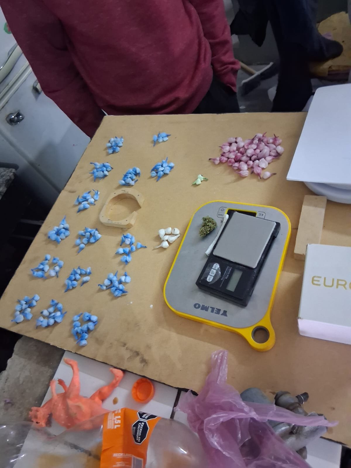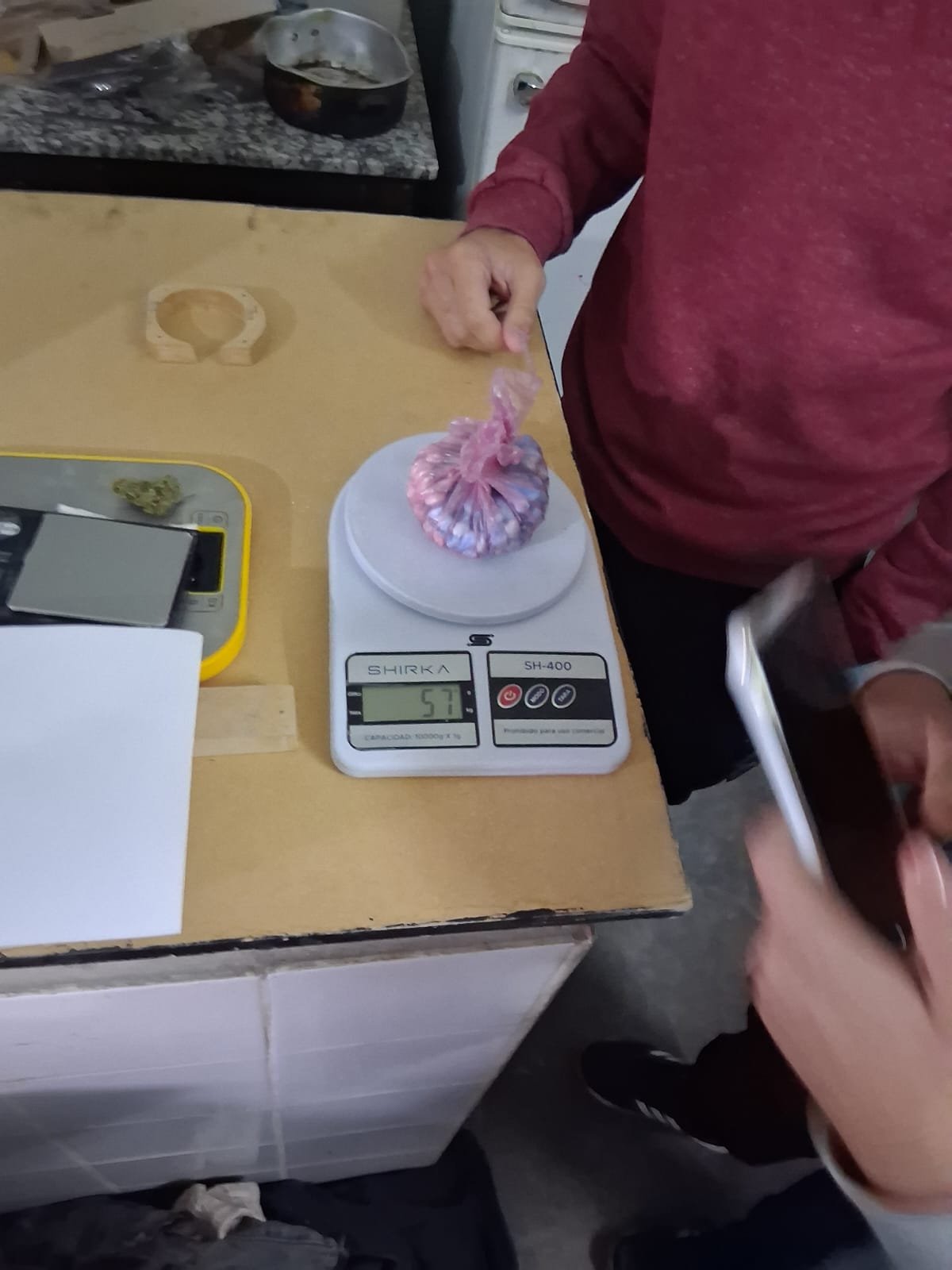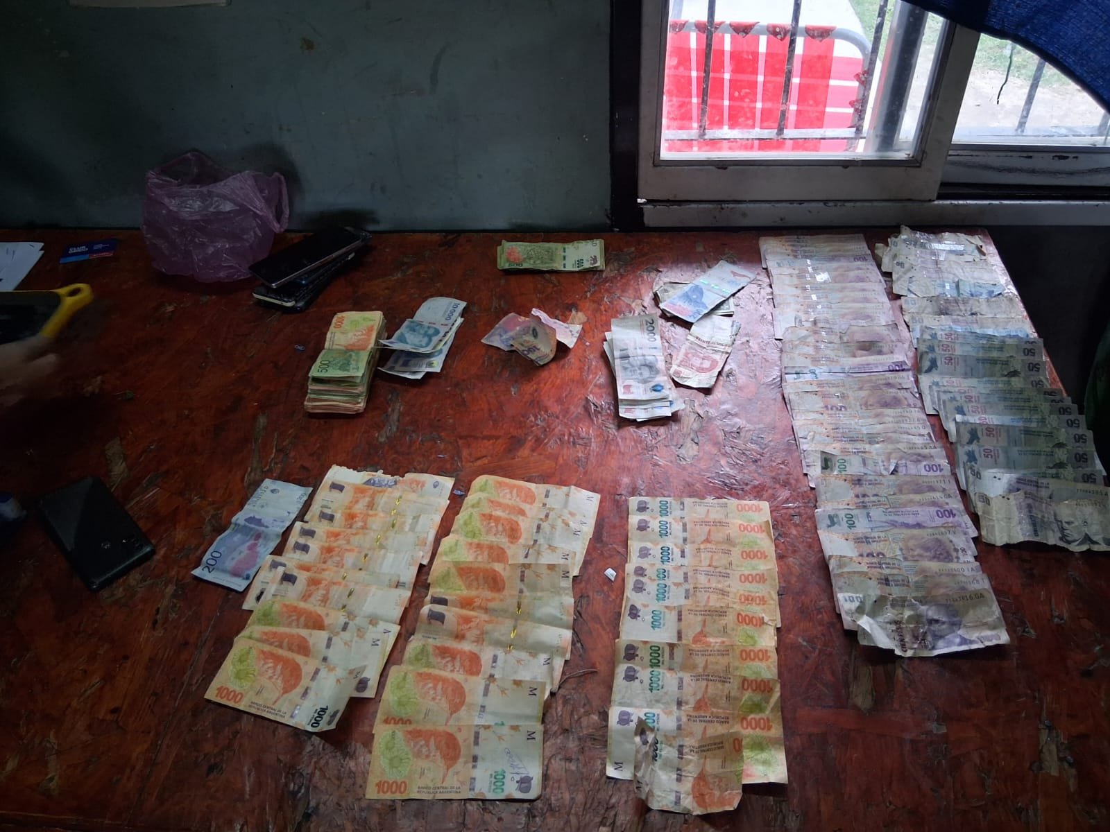 En la requisa se secuestraron 203 envoltorios de nylon con cocaína (57 g), cogollo, un cigarro de marihuana (2 g) y $276.720 en pesos y dólares, además de dos balanzas digitales.