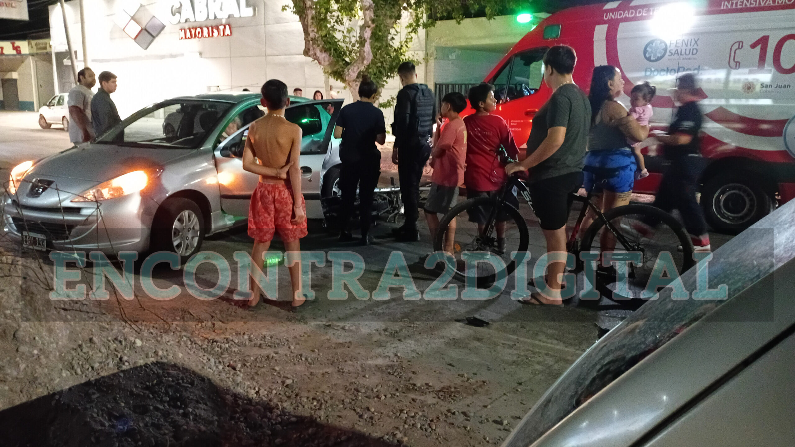 El accidente ocurrió a la altura de un conocido Supermercado Mayorista a las 21.10 hs aproximadamente y el conductor del rodado menor debió ser trasladado por personal del 107 al hospital Rawson, mientras que la conductora del auto, fue asistida en el lugar por un evidente shock nervioso.