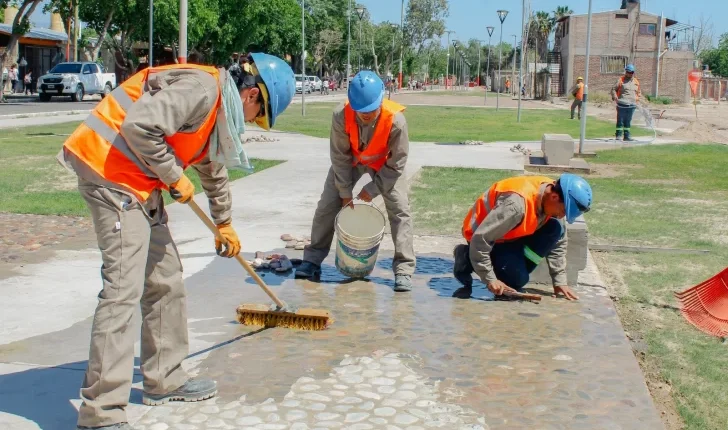 La plaza del lugar mostraró su nueva imagen con más de 1.000 metros cuadrados de veredas y veredines nuevos a los que se suman casi 3.000 metros cuadrados de espacio parquizado con césped y plantas ornamentales que realzan el paisaje del paseo.