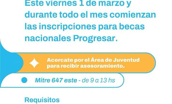 Desde hoy y durante todo marzo, la Municipalidad de la Ciudad de San Juan abre las inscripciones para las Becas Nacionales Progresar. Esta iniciativa, destinada a apoyar el desarrollo académico y profesional de los jóvenes argentinos, se abre nuevamente para recibir inscripciones y brindar un impulso significativo a sus trayectorias educativas.