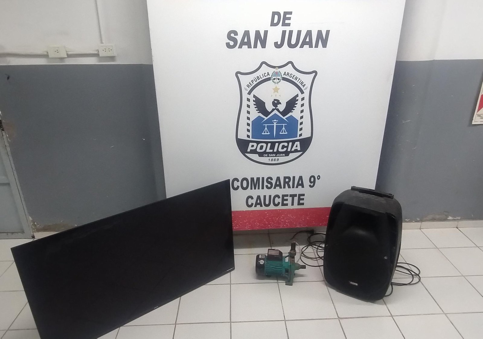 La policía de San Juan, a través de la Comisaría 9° de Caucete, recuperó varios objetos que habían sido robados en la localidad de Pie de Palo.