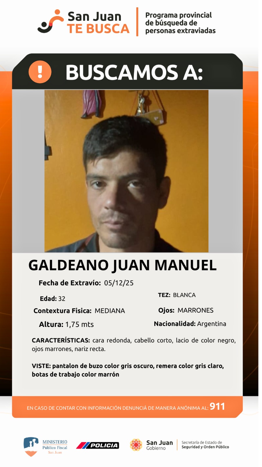 La Secretaría de Seguridad activó el programa San Juan te busca para dar con el paradero de un joven.El muchacho fue visto por última vez el dia 5 del mes corriente.POLICIALES por Radio Encontra2 en jueves 11 de diciembre de 2025 Compartir Seguir Leyendo