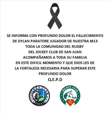 Desde el club Jockey Club de San Juan expresaron su pesar a la familia de ya que Dylan fue jugador de la categoría M13.