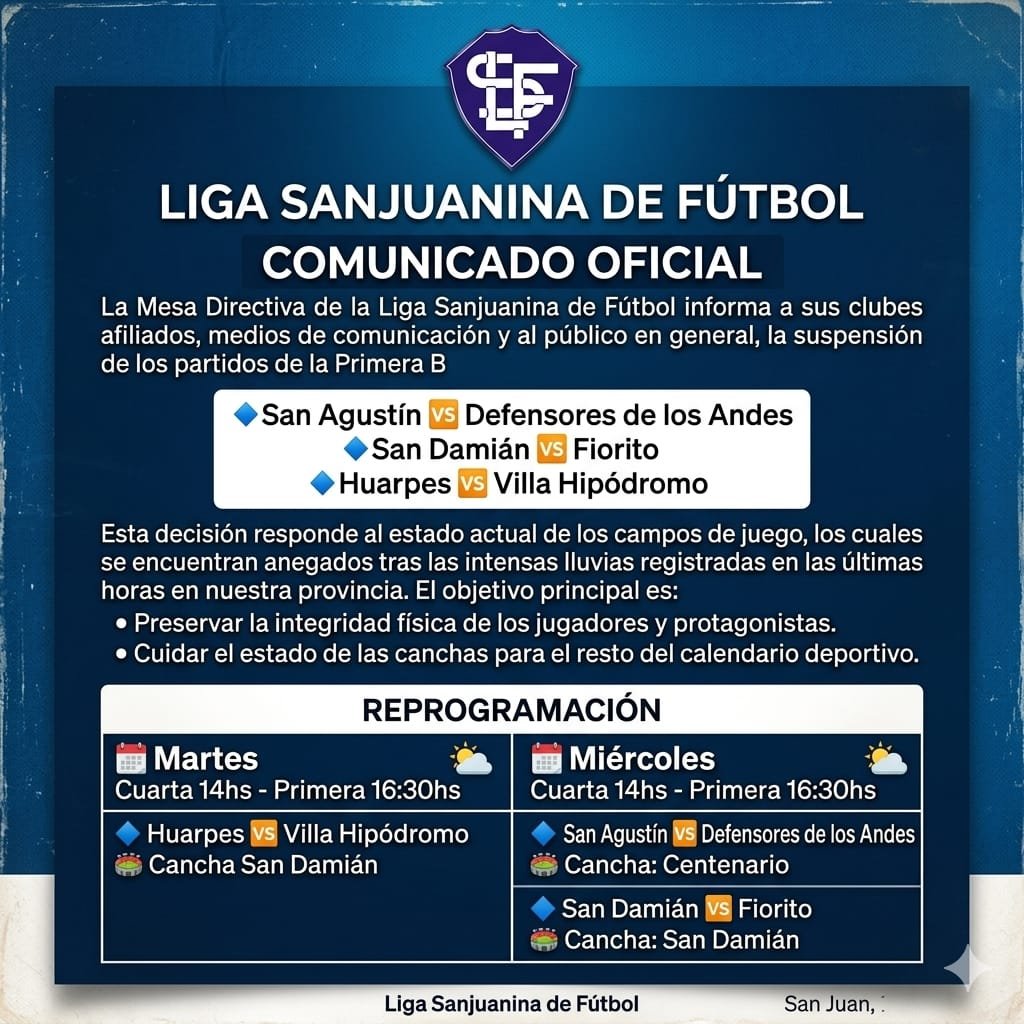 Es por eso que Huarpes vs Villa Hipódromo se reprogramó para el martes, mientras que San Agustín vs Defensores de Los Andes y San Damián vs Fiorito pasaron para el miércoles.