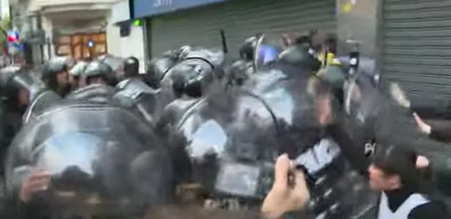 Mientras un familiar de las víctimas resguardaba al periodista, hubo una pelea entre manifestantes, motivo por el cual efectivos de la Policía de la Ciudad debieron intervenir, controlando la situación.