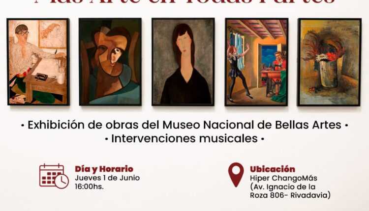 La Asociación Amigos del Museo Nacional de Bellas Artes con la participación de la Municipalidad de Rivadavia, presentan:“Mâs arte en todas partes”. La iniciativa pretende generar nuevos espacios de acceso al patrimonio cultural nacional en lugares de alta circulación, a través de reproducciones de obras de arte de reconocidos artistas argentinos que pertenecen a la colección del Museo Nacional de Bellas Artes