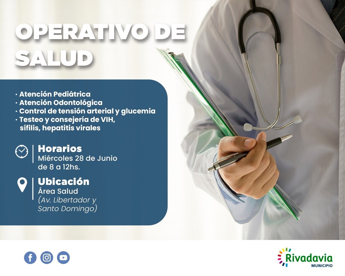 Este miércoles 28 de junio, realizaremos un nuevo Operativo de Salud, en Av. Libertador y Santo Domingo.