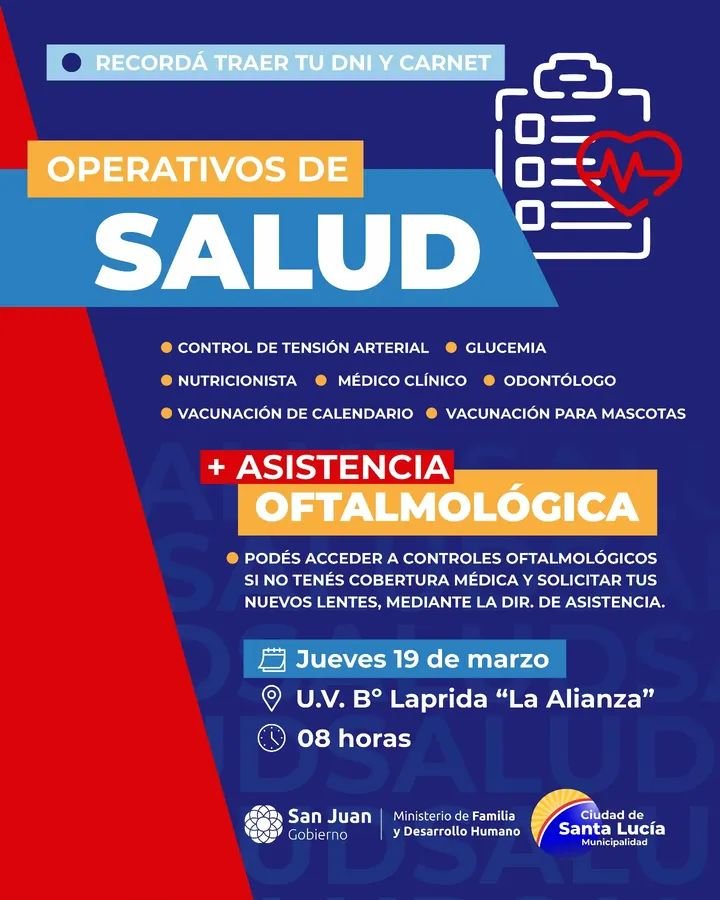 Un nuevo operativo de salud se desarrollará este jueves en el Barrio Laprida de Santa Lucía.