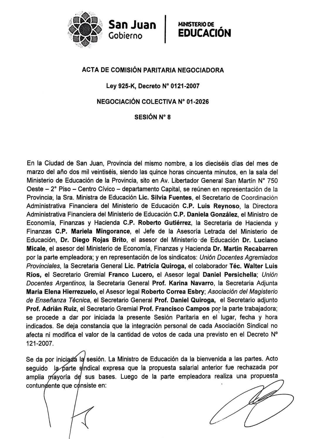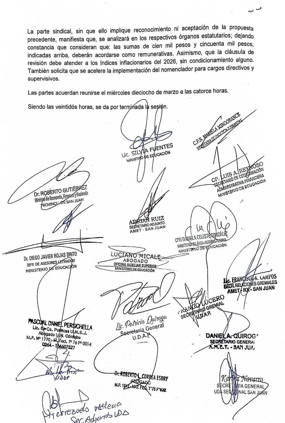 En una nueva reunión paritaria llevada a cabo este lunes 16 de marzo, el Gobierno de San Juan y los gremios docentes UDAP, UDA y AMET participaron de la octava sesión de la primera reunión paritaria del 2026.