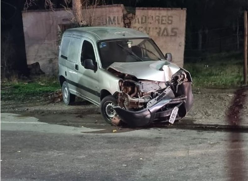 Una camioneta Peugeot Partner terminó destrozada tras impactar contra un semáforo ubicado en la esquina de Mendoza y calle 9 en Pocito.
