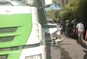 Terrible choque en cadena en Trinidad –Capital-. En la mañana de este viernes, cuatro vehículos protagonizaron un grave incidente en el Lateral de Circunvalación y de milagro, un camionero zafó de sufrir lesiones.