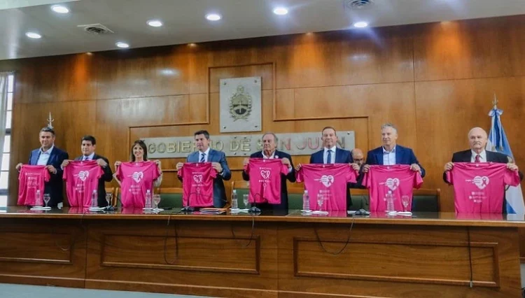 En la Casa de Gobierno de San Juan, se realizó la presentación oficial de la XIII Caminata de Concientización sobre el Cáncer de Mama, organizada por la Fundación Sanatorio Argentino, junto al Ministerio de Turismo, Cultura y Deporte, el Ministerio de Salud del Gobierno de San Juan y la Municipalidad de la Ciudad de San Juan. El evento se realizará el próximo 18 de octubre.