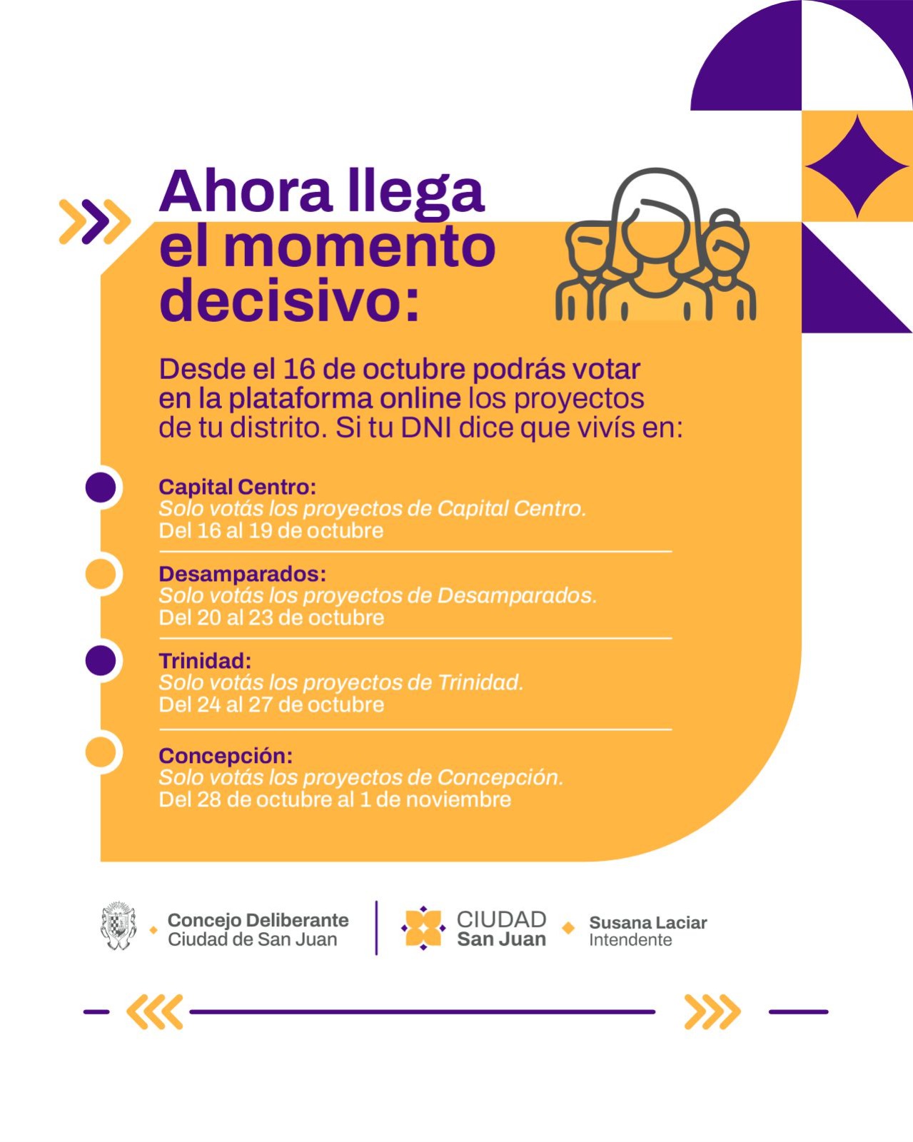 A partir de este año, la votación será abierta a todos los vecinos y se realizará de manera online, facilitando el acceso y ampliando la participación. Las personas interesadas en votar, deberán ingresar a https://presupuestoparticipativo.municipiosanjuan.gob.ar/