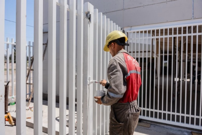 La obra se ejecuta con estructura metálica sobre platea de hormigón armado, con materiales y terminaciones que priorizan la seguridad, la durabilidad y el confort, como pisos antigolpes, carpinterías adecuadas y espacios accesibles.