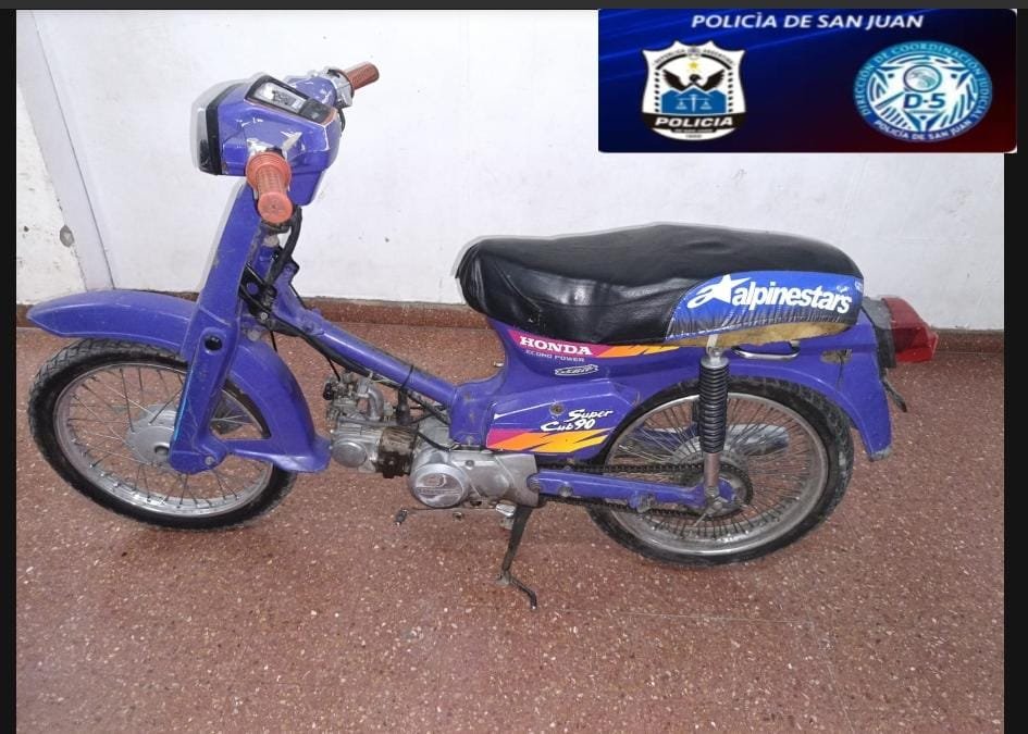 La Brigada de Investigaciones Sur logró recuperar una moto Honda C90 robada en diciembre de 2025 en Villa Media Agua, Departamento Sarmiento. La investigación comenzó cuando se descubrió que el rodado estaba siendo vendido a través de un perfil apócrifo en Facebook.