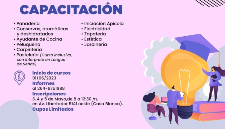 A partir del 3 de mayo habilitamos las inscripciones para los diferentes cursos de formación y capacitación de nuestra escuela laboral “Rivadavia Capacita”.