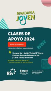Desde la Dirección de Educación y el área Juventud de Rivadavia Ciudad se realiza el llamado a pre-inscripción para clases anuales.