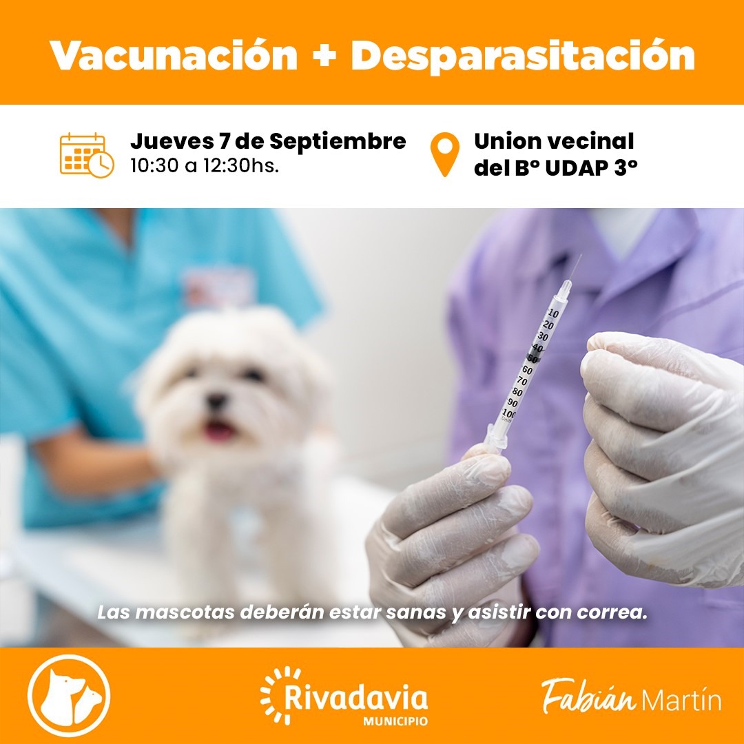 Recordamos que, para vacunarse, las mascotas deben estar sanas y concurrir con correa.