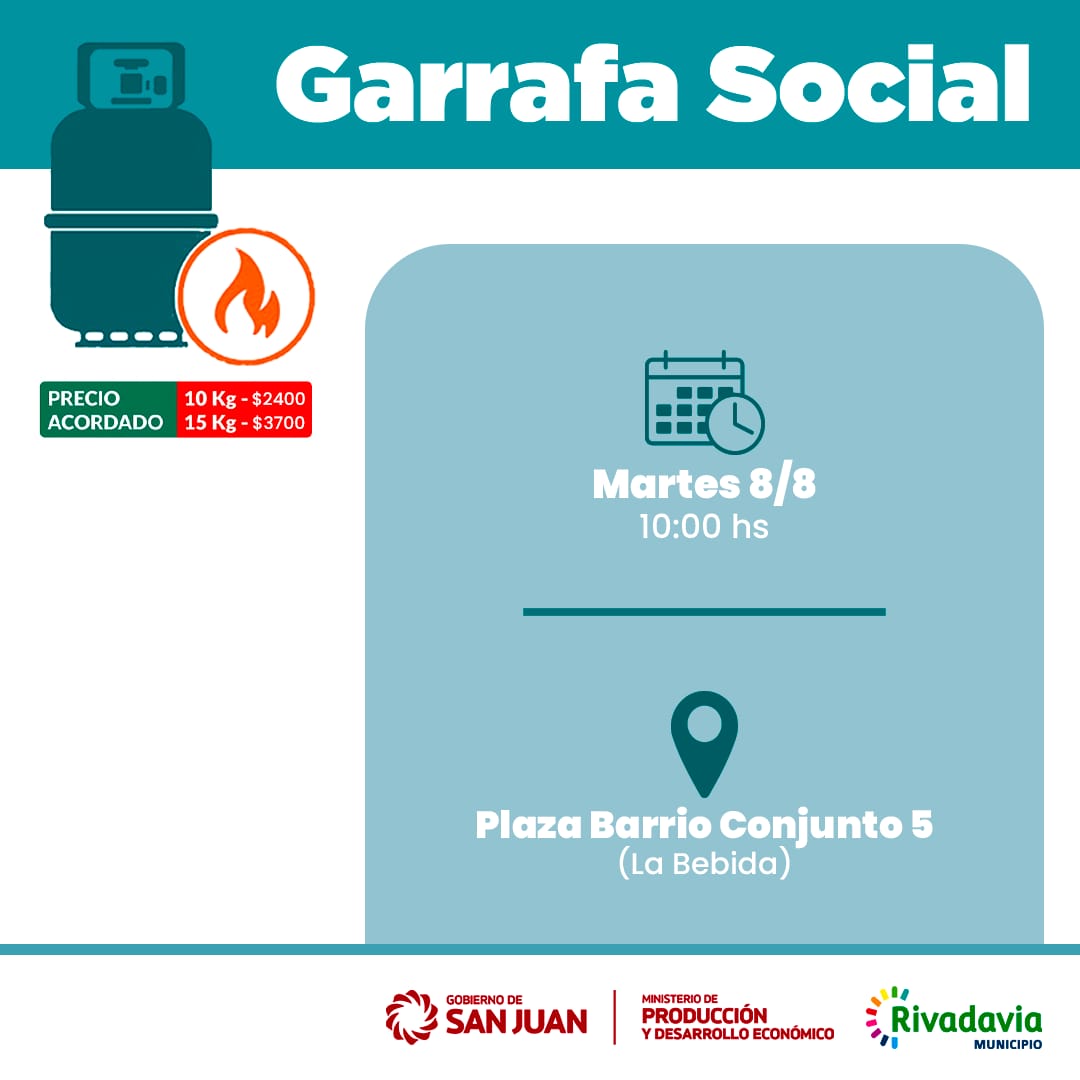 El programa Garrafa Social, del Ministerio de Producción y Desarrollo Económico de la provincia, llega a Rivadavia para que los vecinos puedan acceder a éstas, a través de precios acordados.