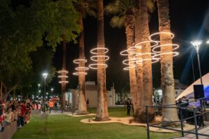 Dos mástiles de 22 y 11 metros, ambos con iluminación LED, reforzando el sentido de pertenencia del barrio.