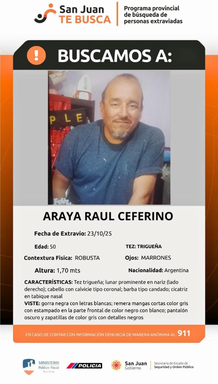 El hombre es de contextura robusta y había salido de su casa para pagar algunas facturas pero no regresó. La última vez que se lo vio vestia remera gris manga corta con estampados negros y blancos, pantalón oscuro, zapatillas grises con detalles negros, gorra negra con letras blancas. Ante cualquier información se ruega informar a la comisaría más cercana o al 911.