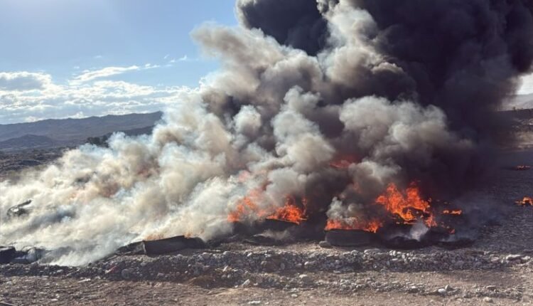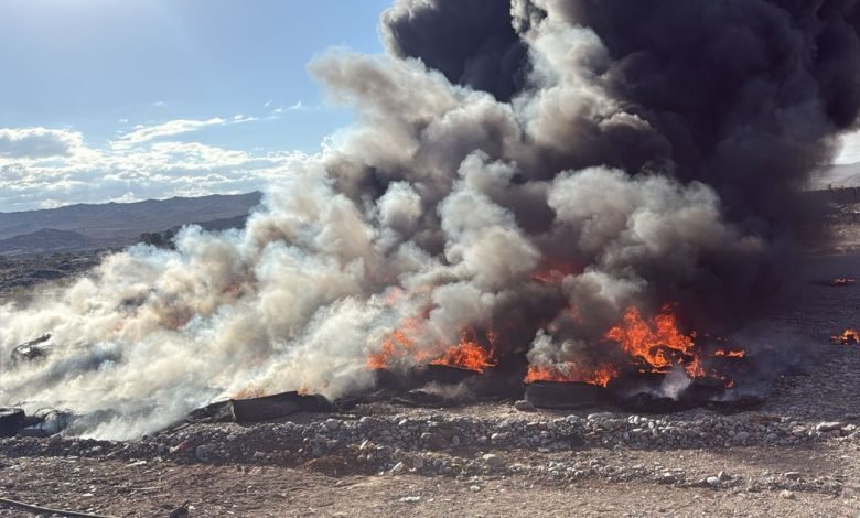 El foco ígneo afectó un montículo de cubiertas en desuso, con una extensión aproximada de 30 metros de largo por 8 metros de ancho. Personal policial y de bomberos trabajó de manera coordinada para controlar y extinguir el incendio, evitando su propagación a sectores aledaños.