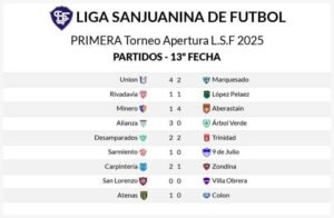 RESULTADOS Y TABLA DE POSICIONES DEL APERTURA LIGA SANJUANINA: