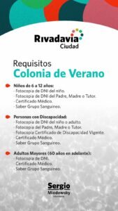 Se vienen las colonias de verano en Rivadavia.