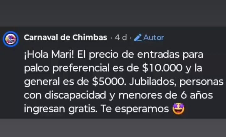 Asi lo confirmaron desde el Municipio, ademas dieron a conocer los valores de las diferentes ubicaciones en el corsodromo.
